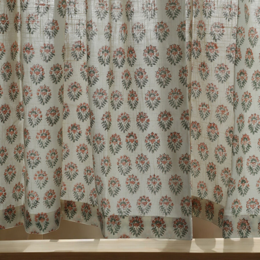 Hand Block Printed Cotton Kitchen Cafe Curtain and Valance ( 2 panels)