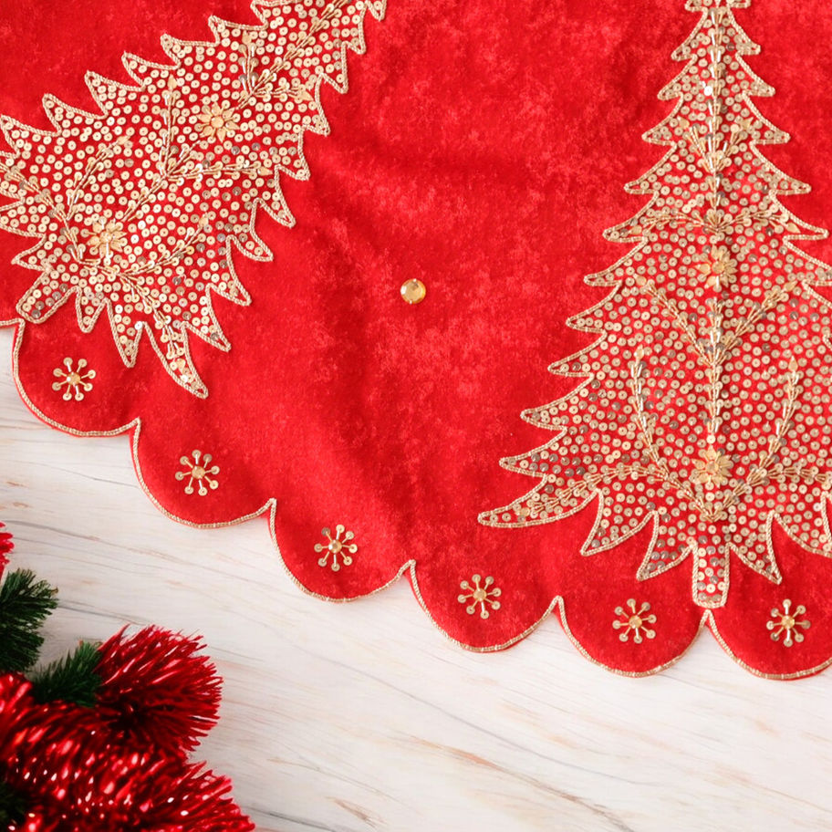 Luxurious Velvet Tree Skirt with Scalloped Edges – Christmas Decoration