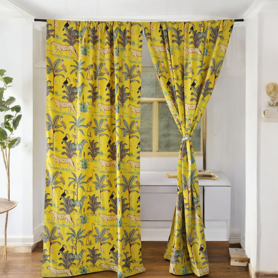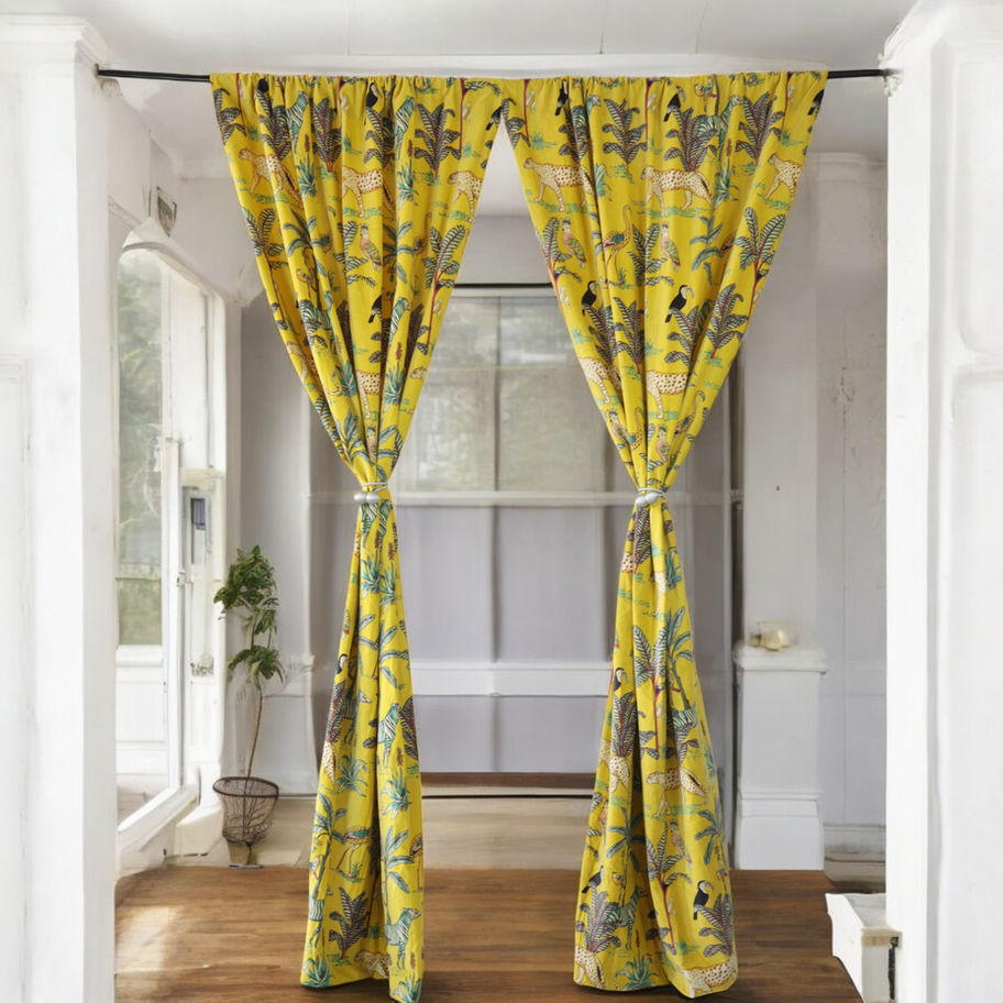 Tropical Jungle Hand Printed Cotton Luxury Curtain (1 Panel)