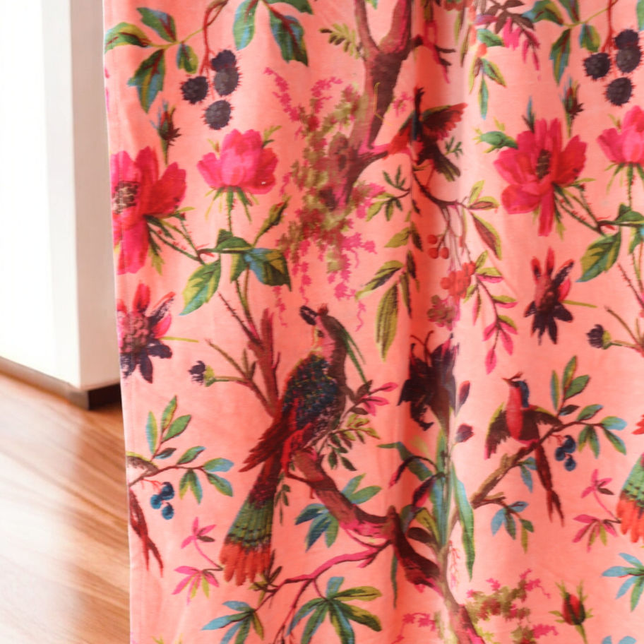 Vintage Style Cotton Velvet Bird Print Luxury Boho Curtain (1 Panel)